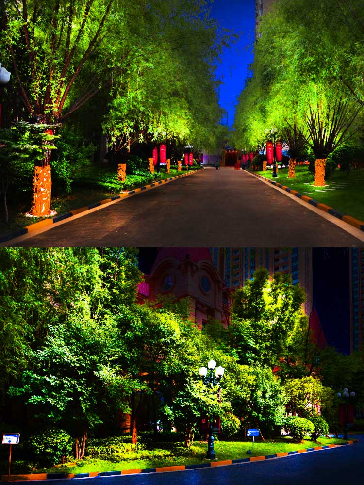 簡介—— 帝景小區廣場亮化,帝景地處未央路地理位置優越,是西安市未央區太華北路的商業繁華地段,環境優美、交通便利。在繁華的城市中創造出一片公園亮點,色彩斑斕,冷暖結合,讓城市夜景的魅力得以顯現,提升綠色城市,低碳生活的城市形象的同時,也提高了使用舒適度和照明外在的景觀美感。