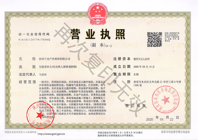 陜西蘭光戶(hù)外照明有限公司 營(yíng)業(yè)執(zhí)照